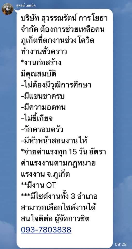 สมัครได้ที่ บริษัท สุวรรณรัตน์ การโยธา จำกัด 0937803838 หรือที่ คุณสุพจน์ สุวรรณรัตน์ ครับ